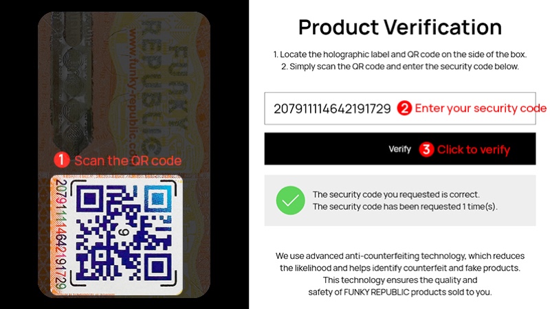 This technology ensures the quality and safety of FUNKY REPUBLIC products sold to you.